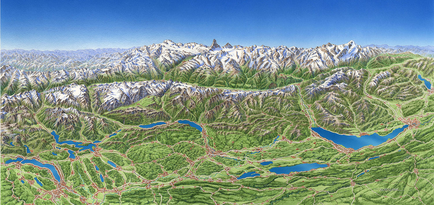 巻頭ページを飾る、 特大スイスアルプス鳥瞰図!!